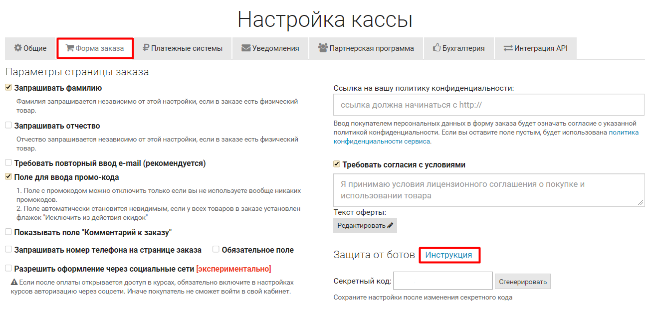 2. Если форма заказа размещена на вашем сайте, защитите её от атак ботов.