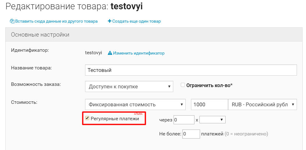 В настройках товара нужно поставить галочку в Регулярные платежи и указать периодичность и/или количество платежей.