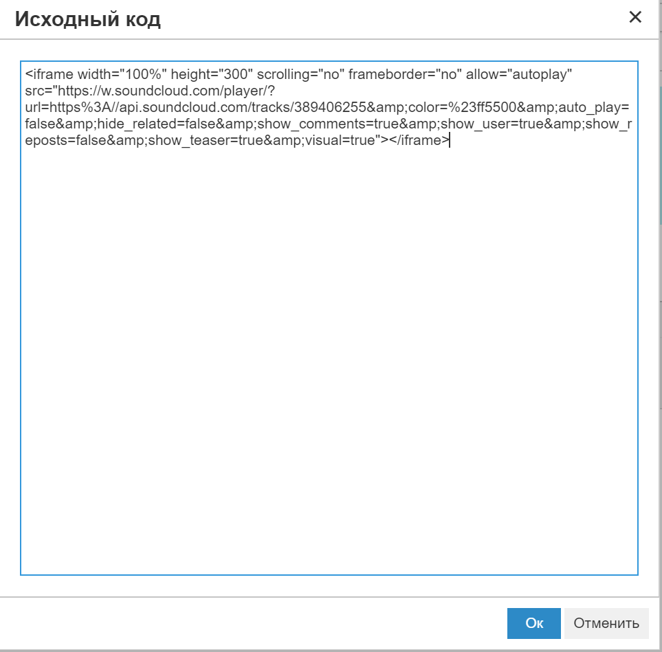 6. В появившееся окно вставьте скопированный код и нажмите Ок