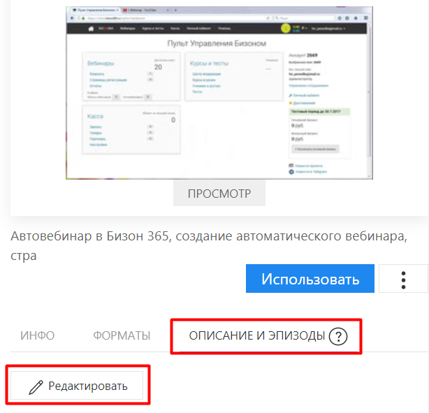 Для этого на вкладке ОПИСАНИЕ И ЭПИЗОДЫ нажмите на кнопку Редактировать.