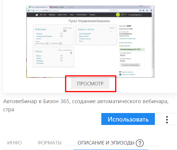 • Нажмите на кнопку Использовать напротив выбранной модификации и в уроке будет использоваться видео только этого формата.