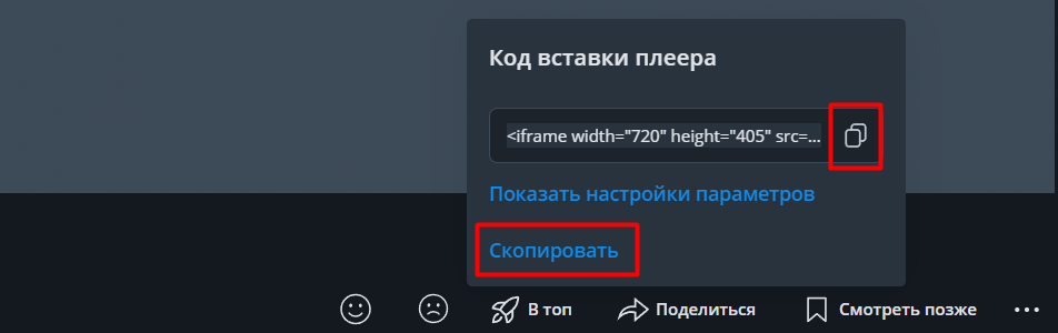 4. Скопируйте код для встраивания