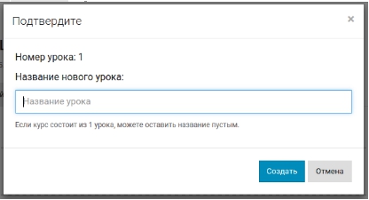 Если ваш курс состоит из 1 урока, то название можно не вводить. Просто нажмите Создать.
