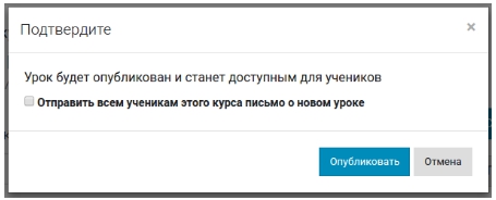 При необходимости, установите флажок Отправить всем ученикам этого курса письмо о новом уроке для отправки уведомления.