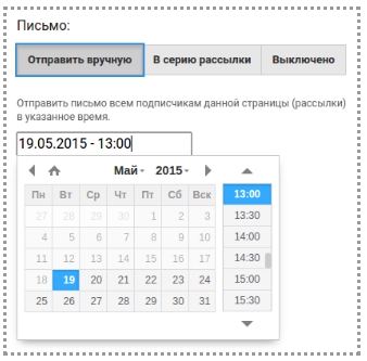 Используйте этот режим, чтобы отправить одиночное письмо всем подписчикам данной страницы в указанное время. - В серию писем