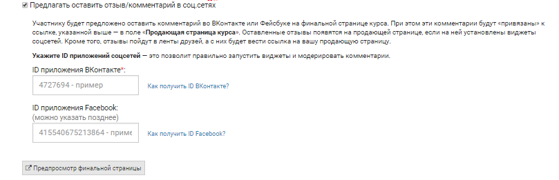 В зависимости от настроек режима прохождения курса и оценки комментариев для пройденных уроков возможны значения: