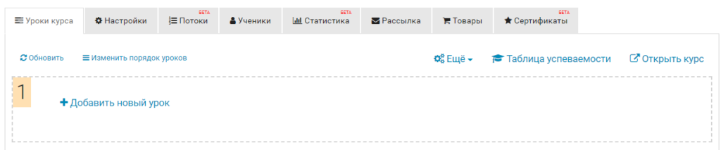 Рассмотрим, какие еще функции, кроме добавления уроков, доступны во вкладке Уроки курса.
