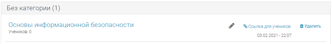 Под названием курса в строке Ссылка для учеников находится ссылка на урок. При переходе по ссылке ученик сразу попадет в урок.