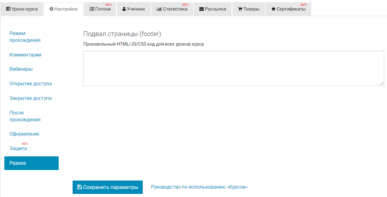 1.3. Индивидуальный HTML/CSS/JS-код в подвал страницы урока