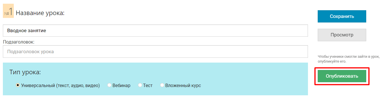 Чтобы сделать урок доступным для учеников, нажмите на кнопку Опубликовать.