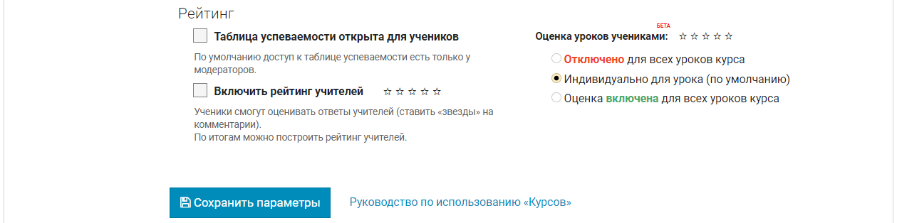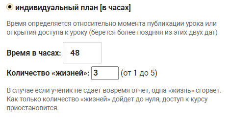 Данные опции будут доступны, если в настройках курса указано, что они настраиваются индивидуально для урока.