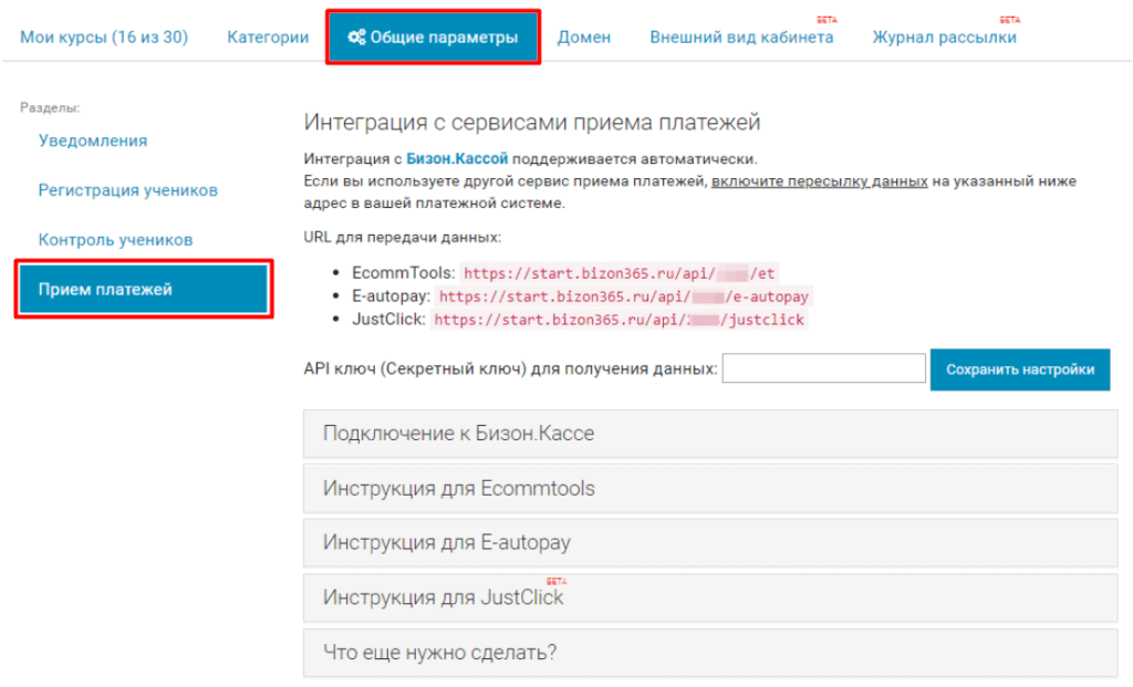 В этом же разделе можно настроить интеграцию с Ecommtools, E-autopay или JustClick.