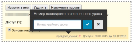 Обратите внимание: Такой способ изменения прогресса ученика рекомендуется использовать только в отдельных случаях. Для обычной ситуации пошагового прохождения следует использовать раздел «Центр модерации», см. далее.