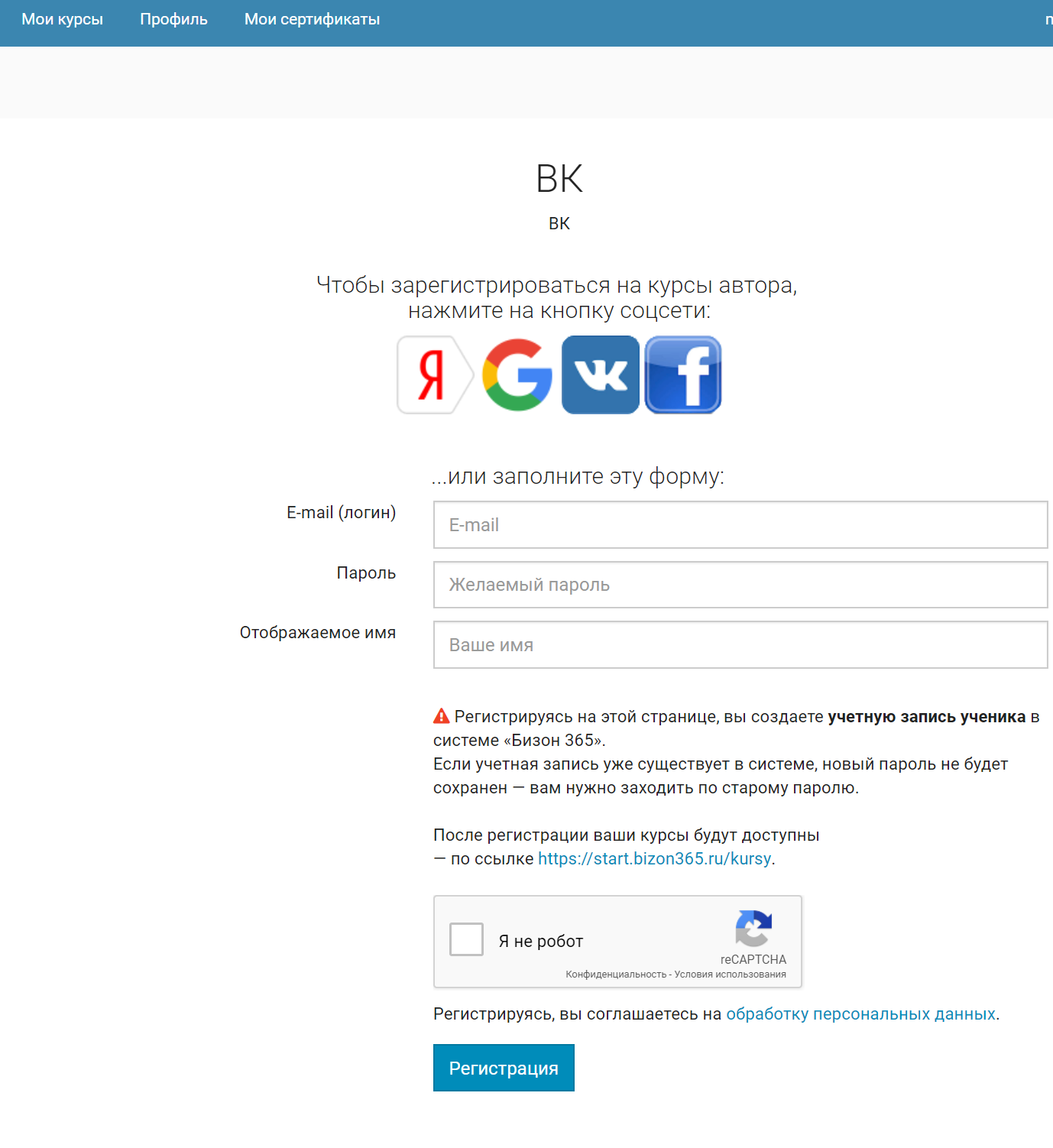 Обратите внимание: если ученик уже регистрировался ранее в курсах какого-либо автора в сервисе Бизон 365, его новый пароль не сохранится. Вне зависимости, регистрировался он самостоятельно, оплачивал ли курс или автор открывал доступ вручную. Ученик сможет войти по созданному сейчас паролю только один раз. Впоследствии нужно будет использовать пароль, полученный ранее.