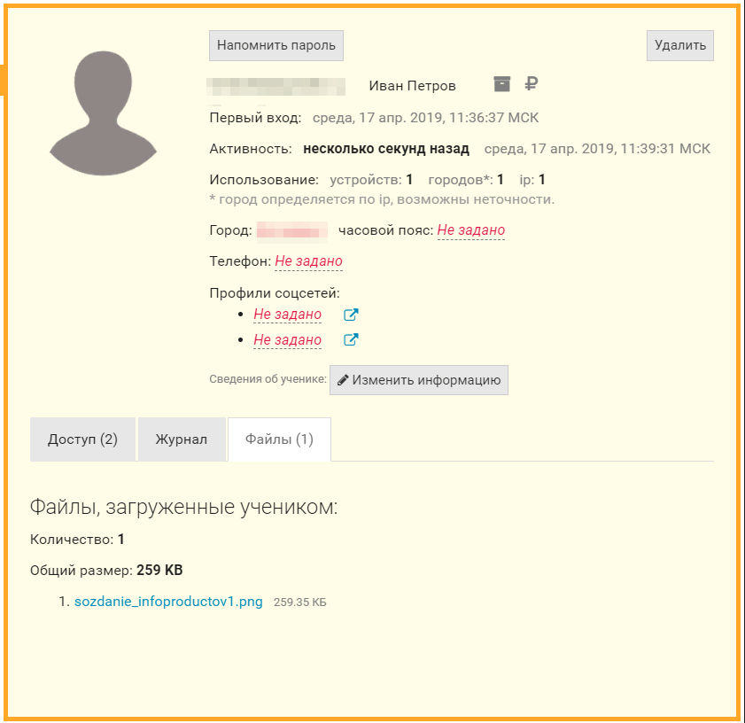 Модератор или сам автор регистрирует ученика и открывает ему доступ к курсам. - cамостоятельный