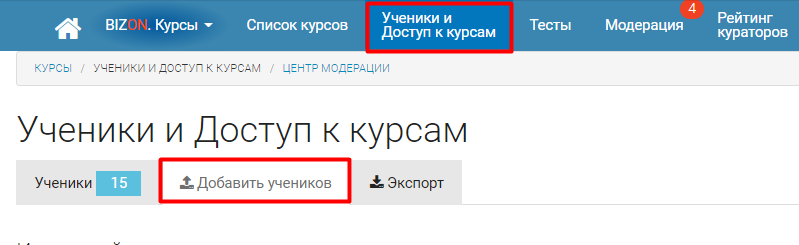 Все операции по регистрации и открытию доступа осуществляются на странице «Ученики и Доступ к курсам». Перейти в него можно из меню Курсы → Ученики и Доступ к курсам.