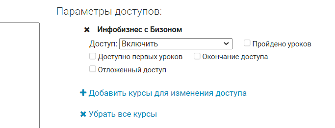 Нажмите на +Добавить курсы для изменения доступа и в открывшемся окне выберите один или несколько курсов.