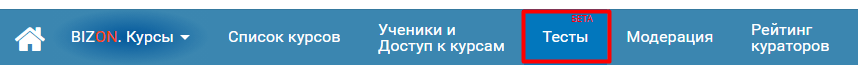 Курсы и нажмите на пункт «Тесты» в верхней панели навигации.