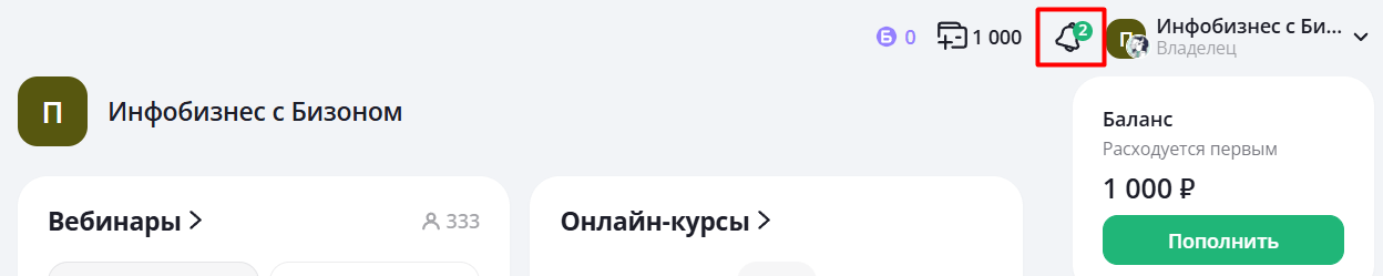 Находясь в Панели управления проектом, нажмите на колокольчик в верхней панели.