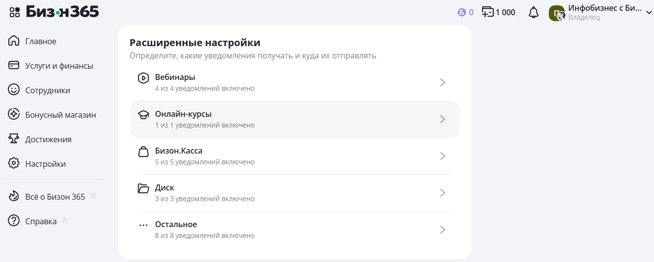 Расширенные настройки — точечная настройка уведомлений