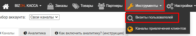 Добавьте каналы с вашими utm-метками. Для этого перейдите в пункт меню Инструменты → Каналы привлечения клиентов.