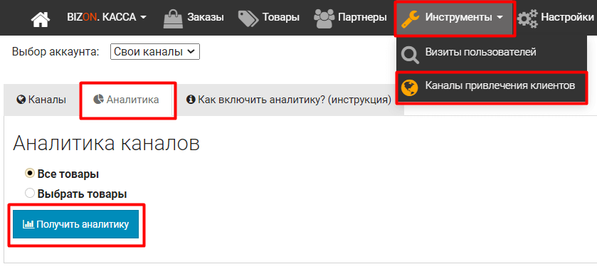 Каналах привлечения клиентов во вкладке Как включить аналитику?