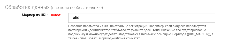 Для успешной привязки маркера refid и utm-меток к подписчику, эти значения должны подставляться в соответствующие скрытые поля вашей формы регистрации.