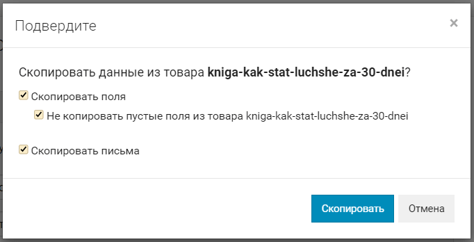 Если вы хотите продавать несколько товаров с одинаковыми параметрами, воспользуйтесь функцией копирования. Это позволит избежать многократного дублирования настроек и тем самым сэкономит ваше время. Копирование доступно на странице «Редактирование товара».