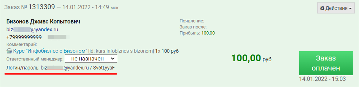 - Оплата доступа - доступ к курсу открывается впервые. Ученик получает новый доступ.