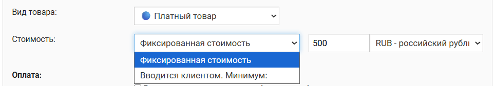 Стоимость товара может быть фиксированной или оставаться на усмотрение покупателя. Если вы позволяете своим клиентам указывать желаемую цену, не забудьте ввести пороговое значение для ограничения минимально предлагаемой цены.