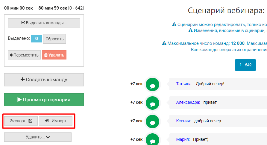 Видеоинструкция об экспорте и импорте сценария: