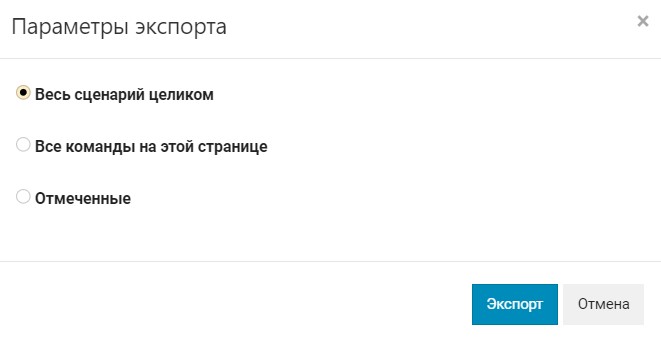- Весь сценарий целиком — будут экспортированы все команды сценария.