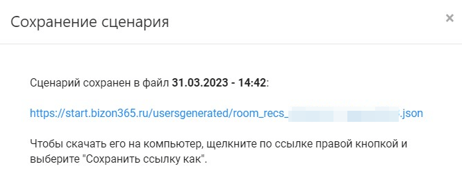 «Экспорт» позволяет сохранить сценарий в файл на Вашем компьютере. Помимо создания резервной копии, экспорт позволяет освободить комнату, которую Вы держите только ради сценария автовебинара.