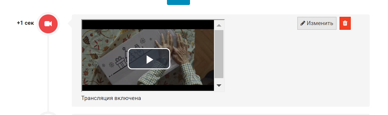 В обоих вариантах после сохранения команды Трансляция в сценарии увидите картинку с видео: