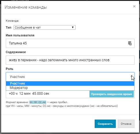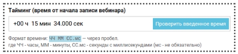 Вы всегда можете проверить себя — правильно ли ввели время в поле Тайминг. Для этого нажмите на кнопку Проверить введенное время.