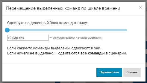 Чтобы переместить по шкале времени сразу несколько событий, сначала выделите их (либо вручную, либо с помощью кнопки Выделить команды— подробнее об этом см.ниже в главе «Как отметить группу событий») и затем нажмите кнопку Переместить.  Появится окно: