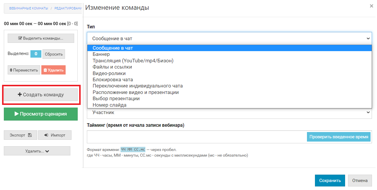 Обратите внимание: длительность автовебинаров ограничена 12 часами (команды с таймингом более 12 часов игнорируются).