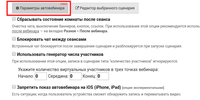 4. Нажмите на кнопку «Параметры автовебинара», чтобы включить дополнительные опции.