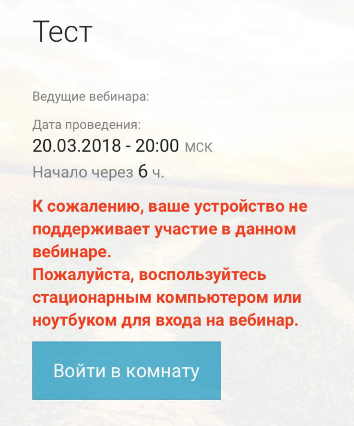 При отмеченном пункте Запретить показ АВ на iOS зритель увидит следующее сообщение при входе в комнату: