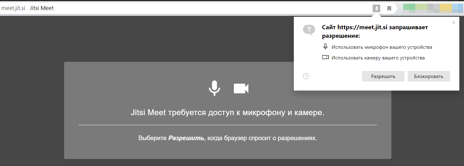 При первом входе в сервис браузер может запросить разрешение использовать микрофон и камеру вашего устройства. Выберите Разрешить.