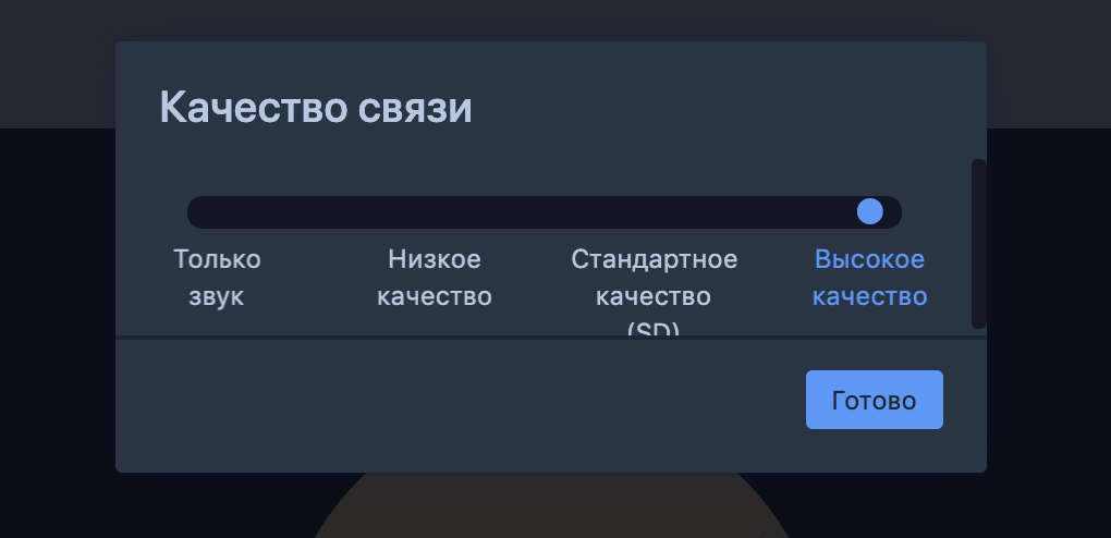 В зависимости от скорости интернет-соединения вы можете отрегулировать качество связи. В пункте меню Качество связи можно видеть, какое качество в данный момент и при необходимости изменить его.