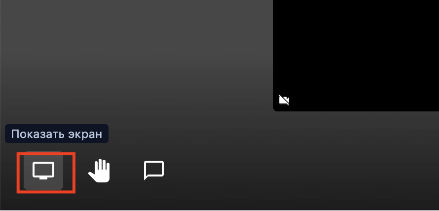 Нажмите на иконку монитора в левом нижнем углу, чтобы открыть доступ к своему экрану.