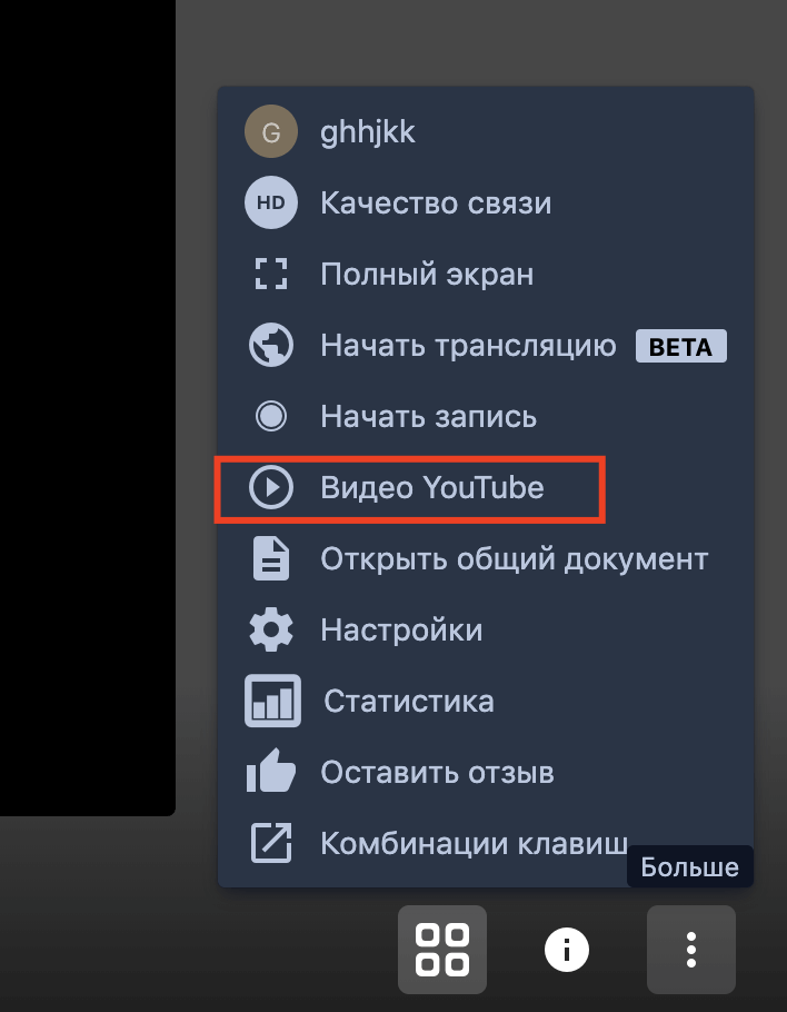 Чтобы показать ролик с канала YouTube, вызовите меню по кнопке с тремя точками в нижнем правом углу. Выберите Видео YouTube.