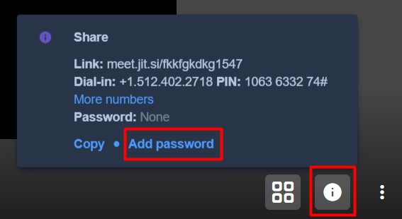 Также можно установить пароль на вход в конференцию - присоединиться смогут только те, кому известен пароль. Пароль задаётся в информации о трансляции.