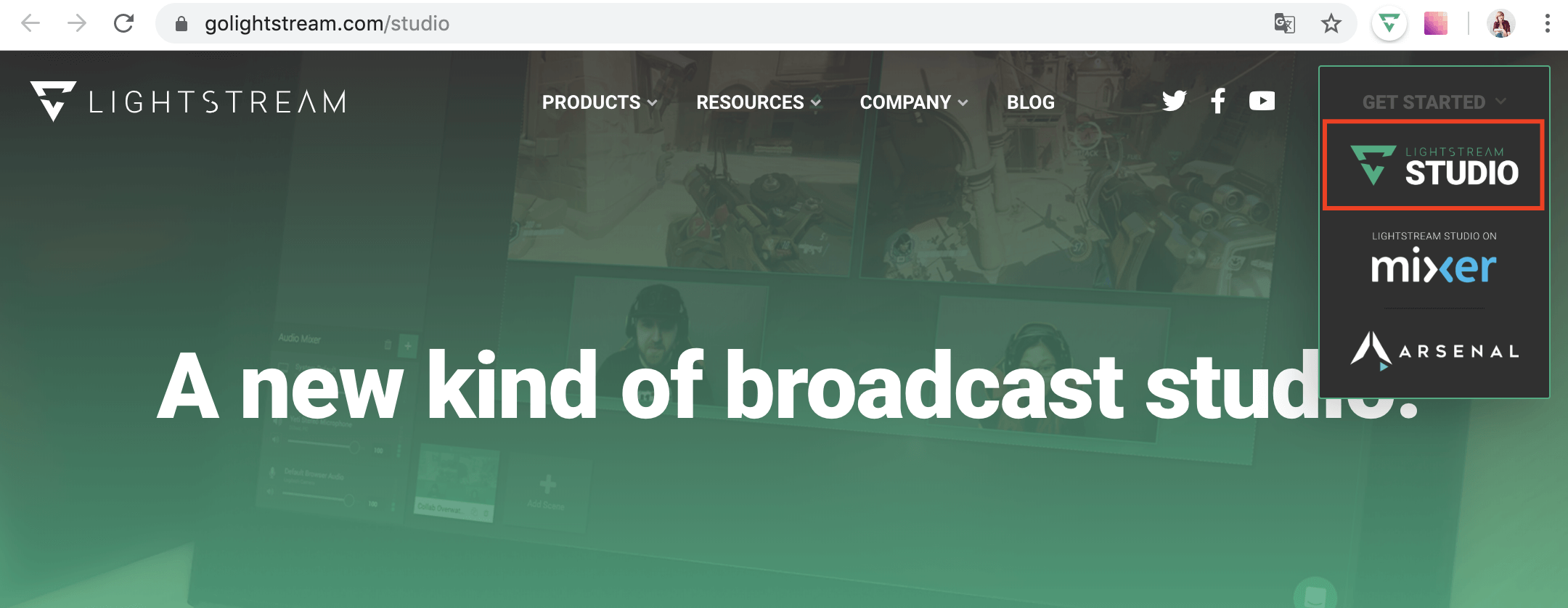 Если комната не открылась автоматически, перейдите по ссылке https://studio.golightstream.com, в правом верхнем углу выберите пункт LightSteream Studio.