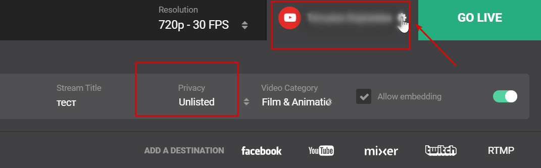 - Доступ к трансляции нужно указать Public (открытый) или UnListed (ограниченный по ссылке).