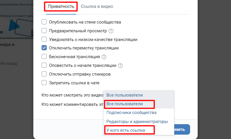 В строке Кто может смотреть это видео? должно быть выбрано Все пользователи или У кого есть ссылка.